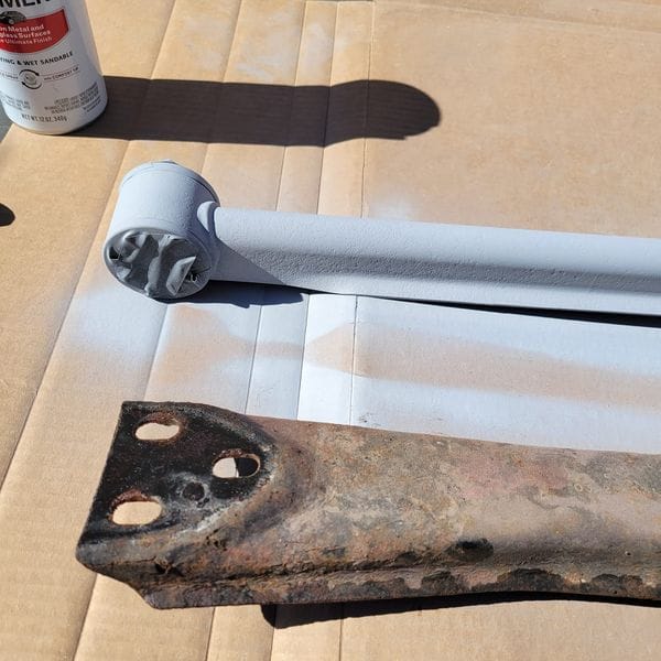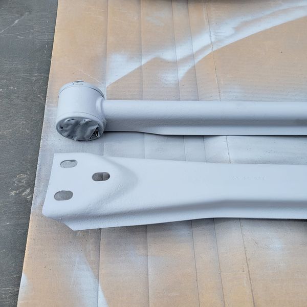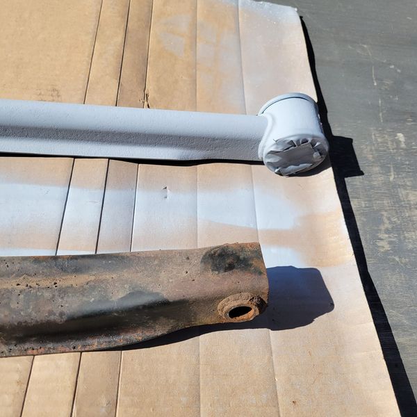 TA 2, day 12. Cleaning up the rear sway bars (technically called tie rods). Here are some before sand blasting pictures and after blasting and priming. These will get painted metallic silver later --> House of Kolor Shimrin Silver: