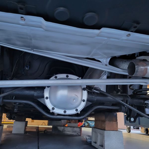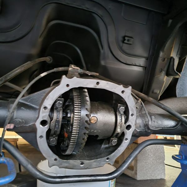 gas tank area. Gas tank in. Rear end drained, cleaned and prepped.
