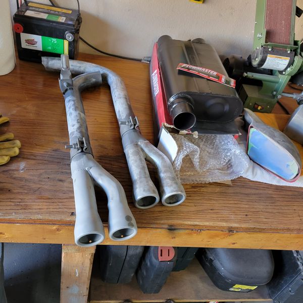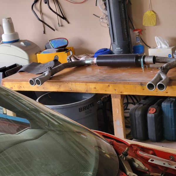 TA 2, day 9. Door panels, mirrors and exhaust off. Tailpipes and mirrors sandblasted: