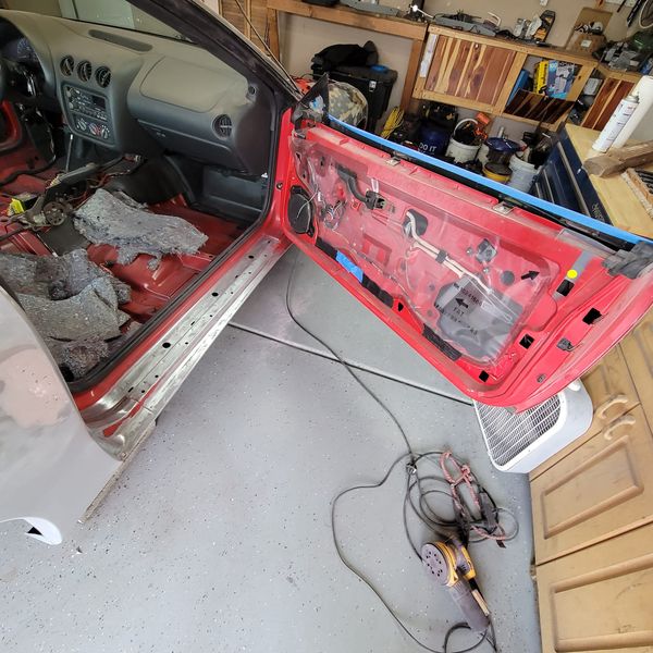 TA 2 day 42: finished the door jambs and removed the hatchback.