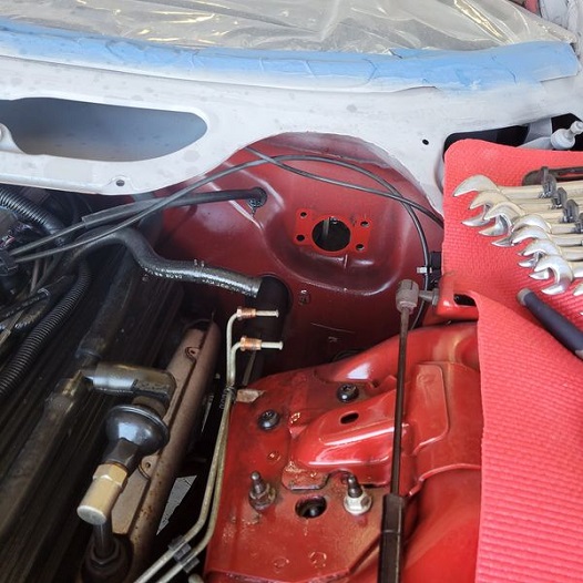 Now that the windshield, wiper asm's and such are all off the car, I see a big body cutout there for taking that brake booster out (right side of image above).