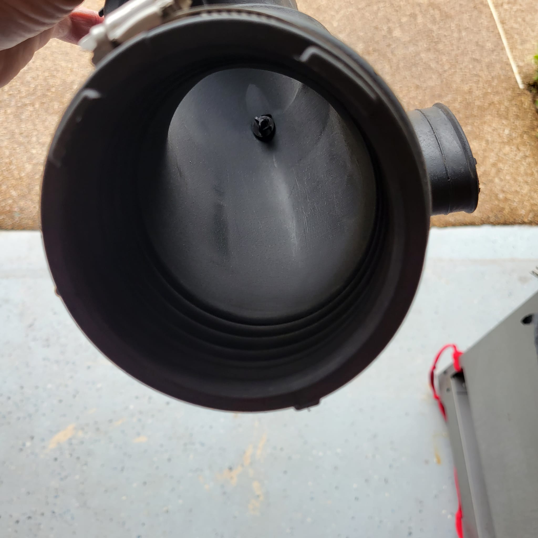 TA 2, day 32: New intake boot, without resonator. Smooth interior laminar flow. New filter. All back together. Next up hatchback comes off. New versus old picture and interior of new one: