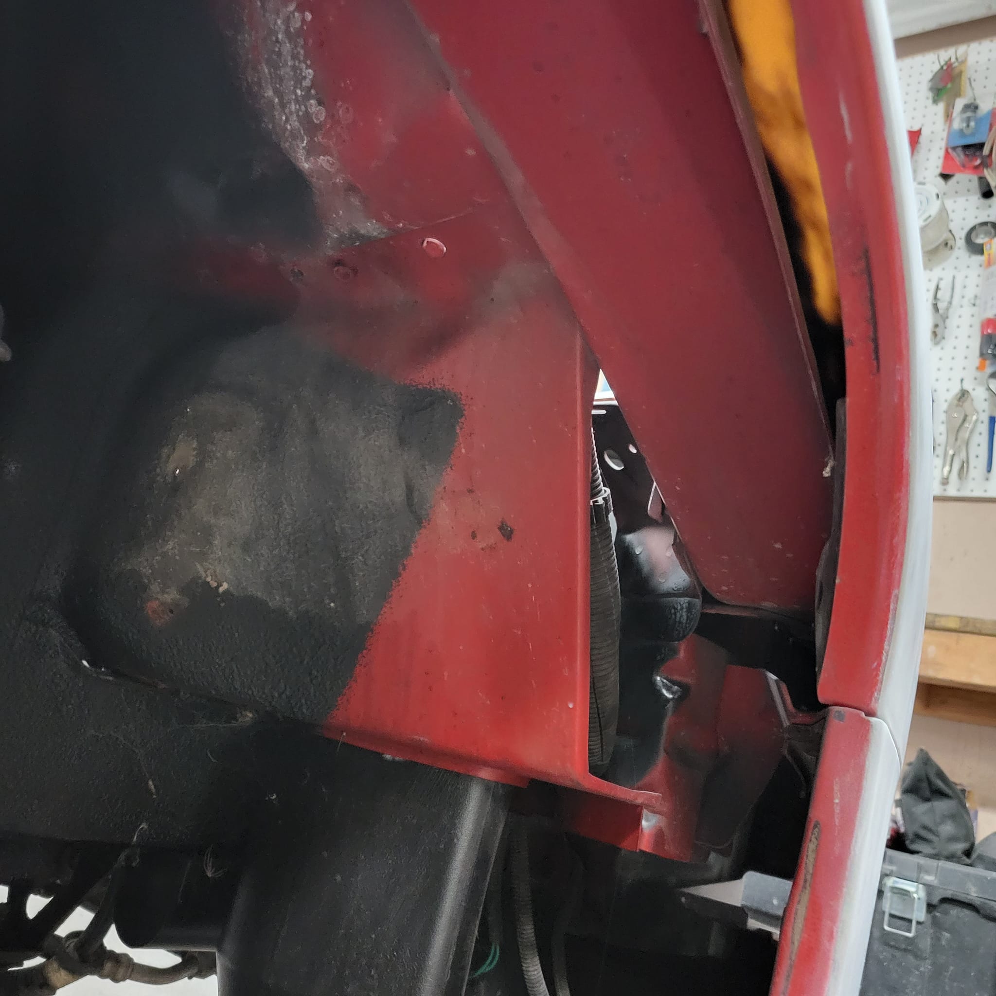 TA2, day 34: pulled wheel wells. Time to wash out inner door jambs, and dirty wheel wells. Then prime and paint all of that flat black: