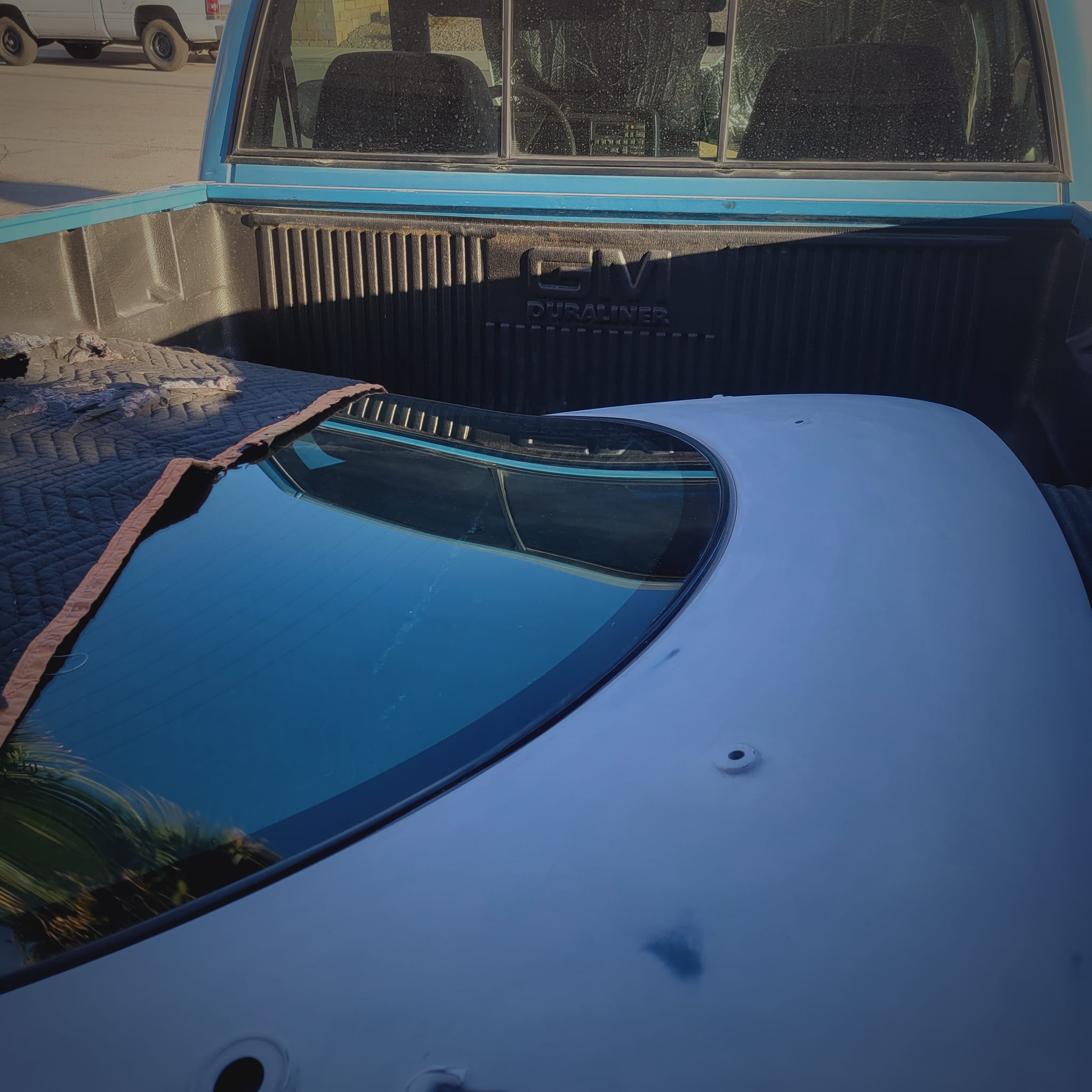 TA 2, Day 23: We pulled the windshield out and chucked it. Pro tip: When removing a windshield rubber seal, take a hand torch and heat up a stiff putty knife. It will cut through that tough rubber seal like butter.