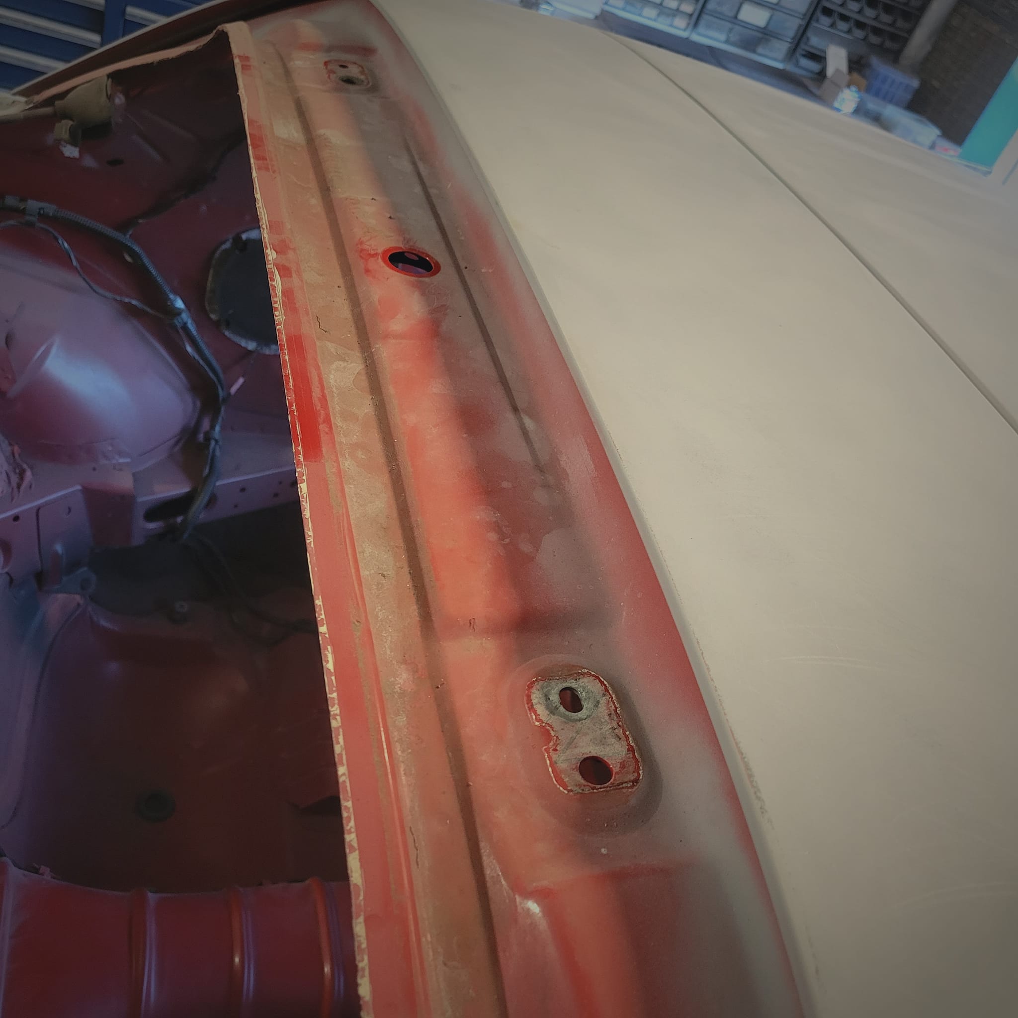 TA2 day 43: today I finish the last of the sanding,, the area up under the hatchback pivot area.