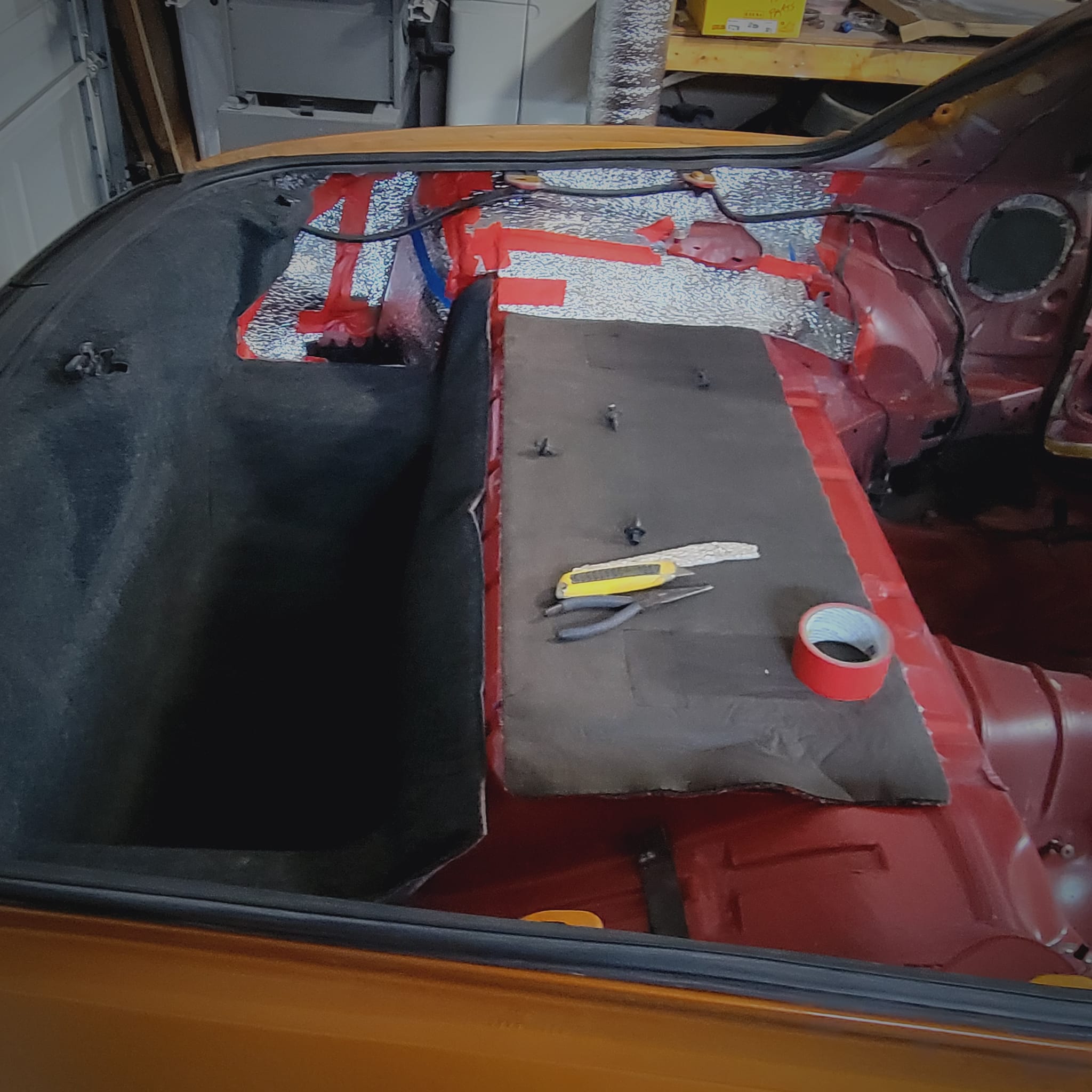 TA 2, day 51: Insulating interior:. Doing the rear wheel well areas really reduces the interior rear tire noise.