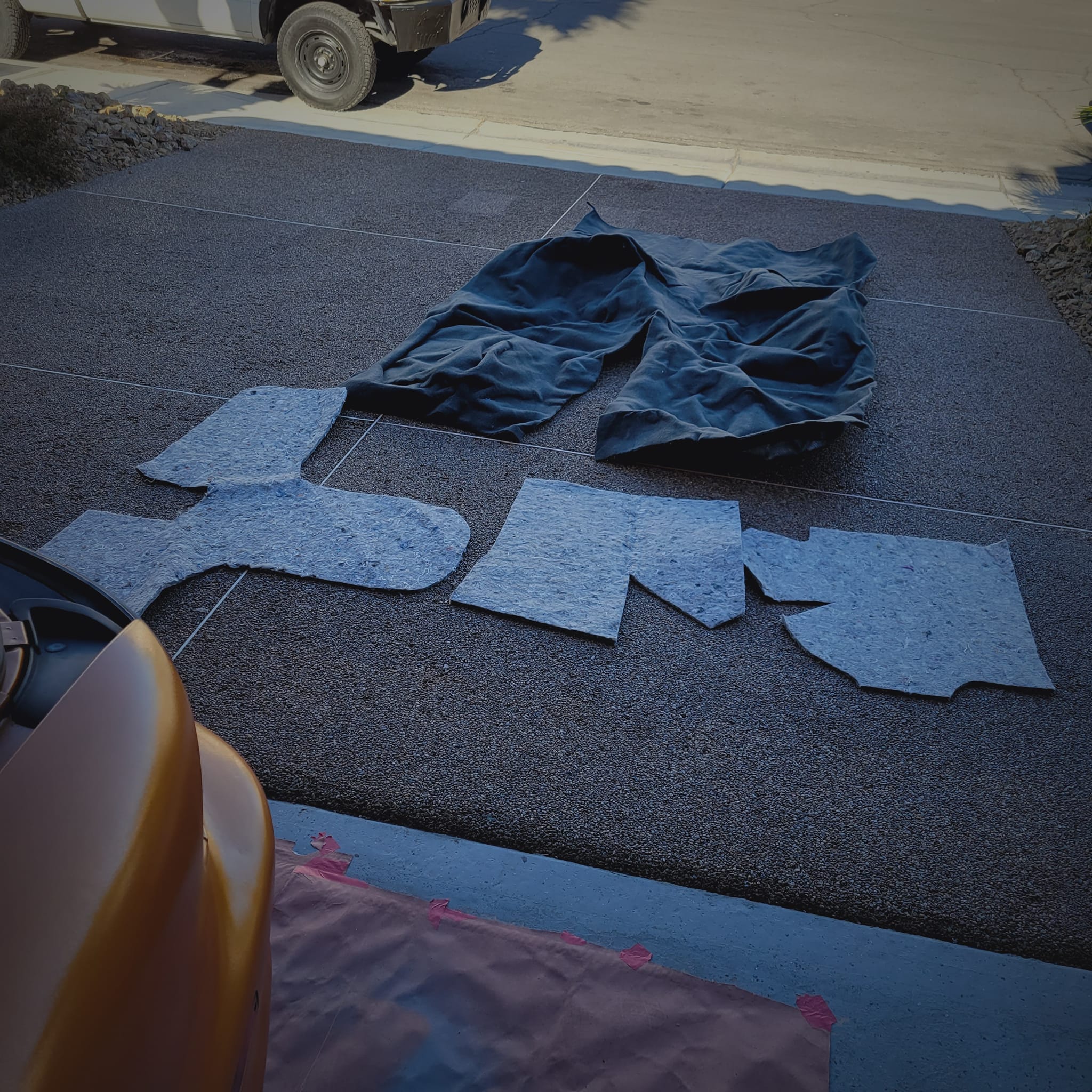 TA 2, DAY 53: Finishing the interior insulation (picture is of ceiling panels). Insulating the ceiling really helps reduce the interior temperature by 30-40 degrees on hot Las Vegas days. I got tired of melting headliners, This really helps. Those spots on the rubber are cloudy water from wet sanding the roof. That all wipes off. Also, installed new pop-up headlight motor, to replace that one with the bad gear. They work perfect now, fast and quiet.