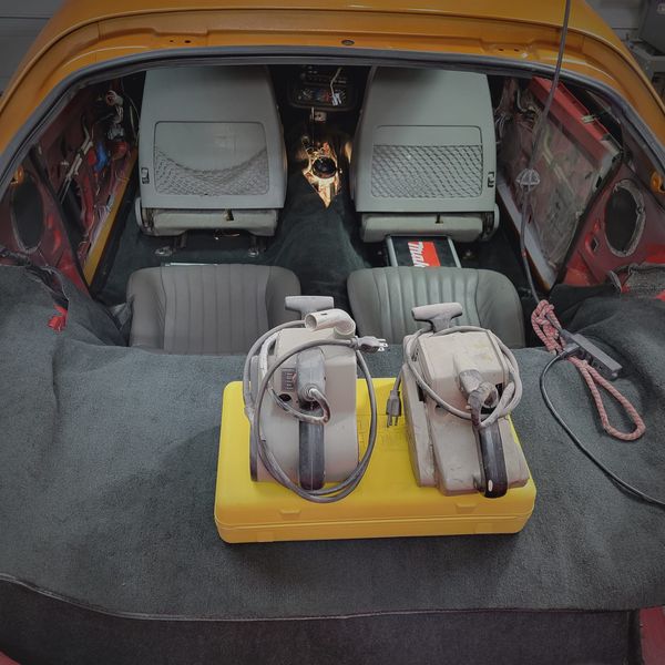 TA 2, day 60: Console mounted. Spare tire, jack and antenna in. Carpet trimmed and cutouts done. Fired it up. Engine and oil pressure running strong.