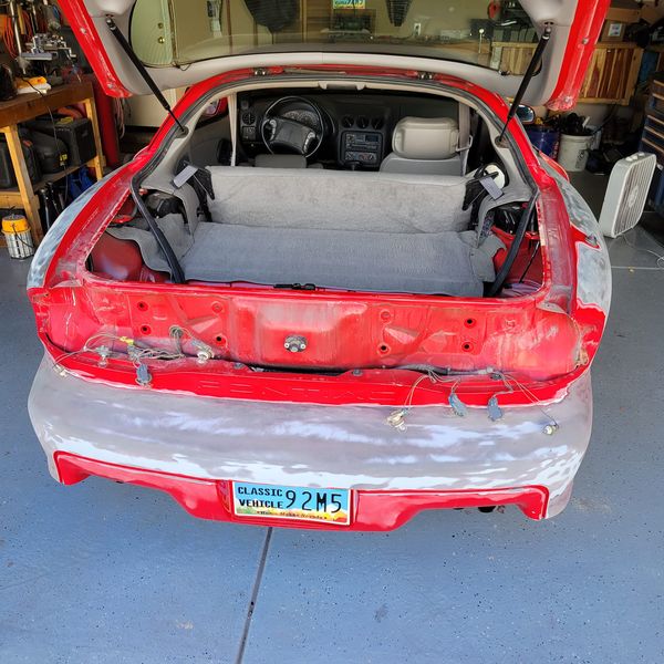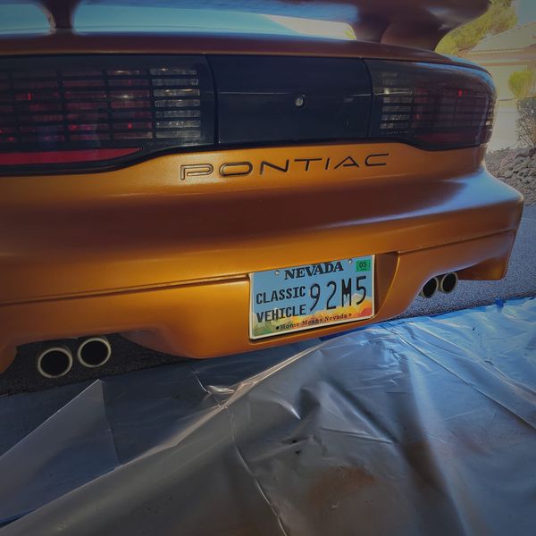 TA 2, day 67 part 2. Rear end all together. Gold bird and gold Trans Am text will go on the center panel after it gets buffed out. Right taillight will ultimately get replaced. Have a nice one? Call me: 702-610-9748 --> James