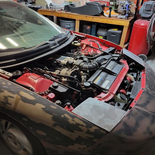 TA 2, day 29: Sprayed red under hood with 2000 degree flat black on what I could reach.